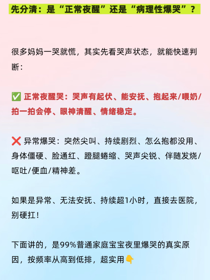 宝宝深夜片刻肝胆俱裂地哭,全家东说念主都被惊醒,如何哄都哄不好,那种嗅觉是不是特地崩溃?许多姆妈第一反映是“孩子是不是缺钙了”,或者“是不是吓着了”,然后就急着往病院跑,或者思多样偏方。其实,我们可能都歪曲宝宝了。